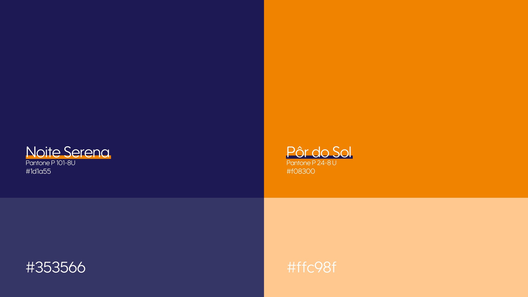 A paleta de cores combina tons de azul e laranja. O azul reforça a sensação de estabilidade, segurança e confiabilidade, enquanto o laranja introduz energia e dinamismo à identidade, criando contraste visual e reforçando a ideia de inovação e movimento associada aos produtos da empresa.